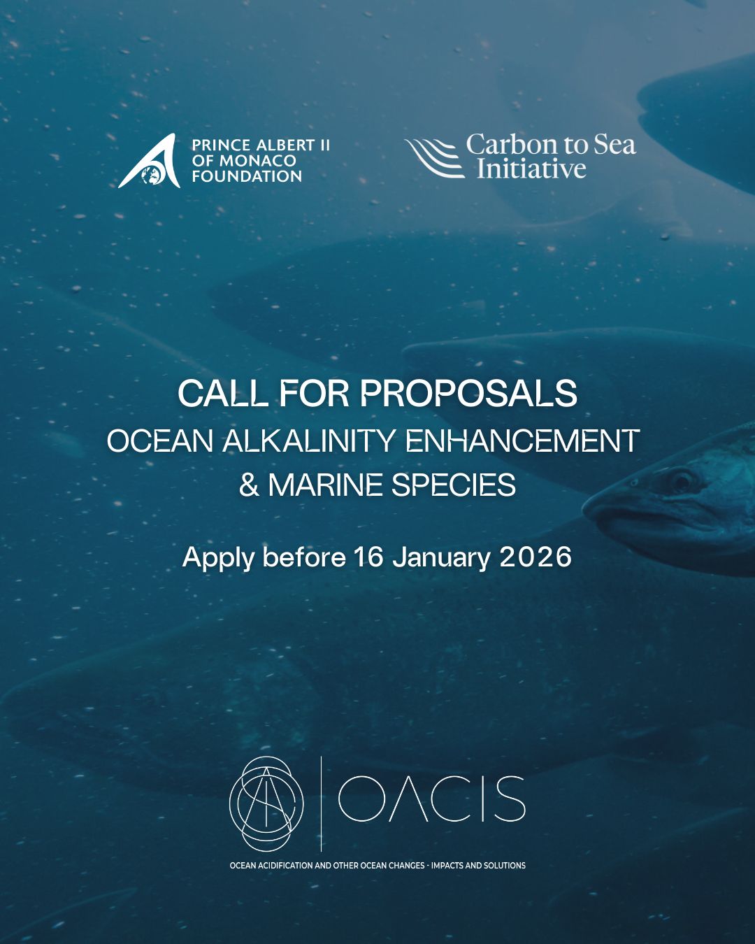 The Prince Albert II of Monaco Foundation and Carbon to Sea Initiative launch a call for proposals to study the impact of ocean alkalinity enhancement (OAE) on marine life