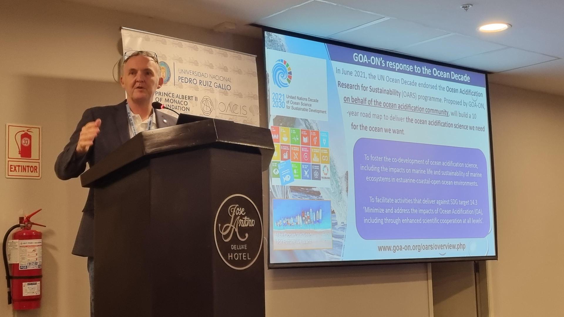 “International and interdisciplinary collaboration and coordination are key to study this complex topic in a holistic way. Providing training and access to data and methods is crucial to build an inclusive research community on ocean acidification. It is encouraging to see scientists of so many different nationalities participating in the Symposium, and in particular the strong contribution from Latin American researchers here in Lima. The Foundation is delighted to support this important gathering, particularly through funding the hybrid set-up of the conference thus ensuring that discussions were made available to a larger audience”.